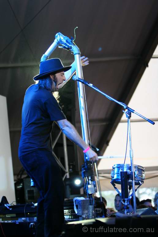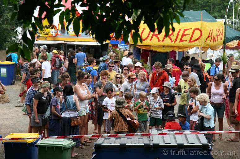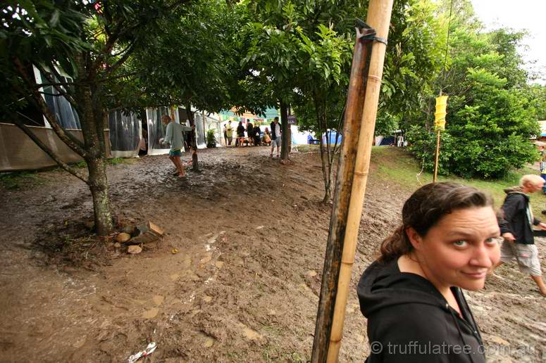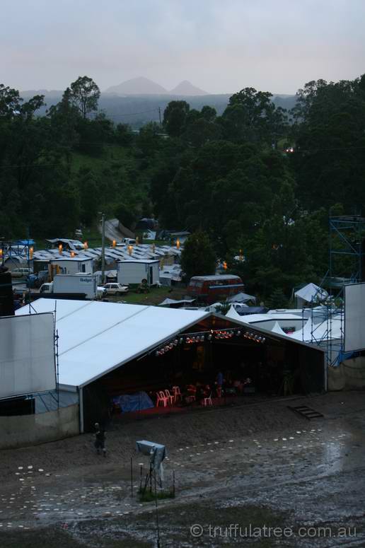 The festival typically offers a lovely spread of sub-tropical QLD summer weather, ranging from stinking hot and dusty to wet and muddy. Mostly, the elements conspire to offer a variety of conditions (last year's weather was perfect), but this year we copped the wet end of the spectrum. The organisers have done a huge amount of work over the years improving the drainage of the site, but there's only so much water that can be coped with, and Mudford it was.
