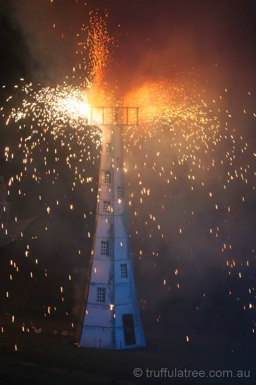 So despite the damp, the fire event went ahead. It was significantly less baffling than last years', although the lighthouse didn't want to burn at the end - it took quite a while to go up, but it did eventually, to the cheers of the crowd.